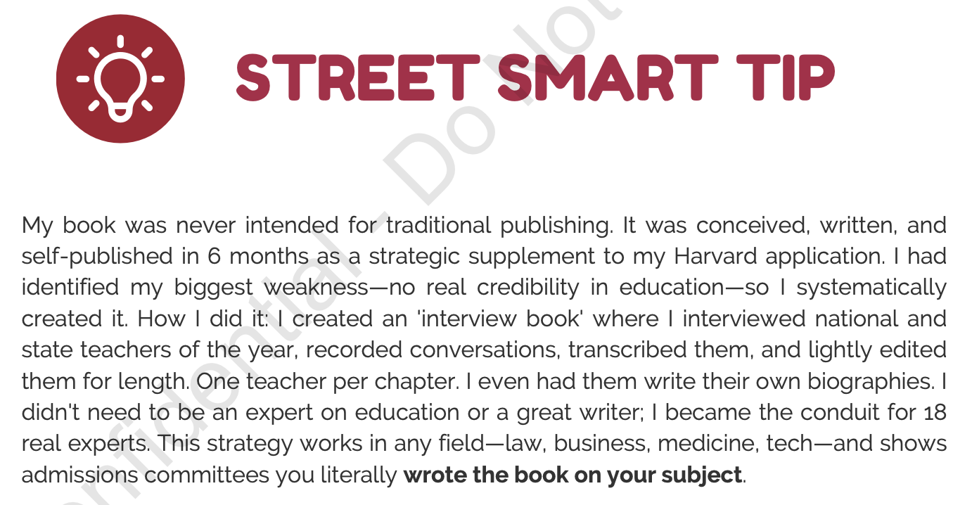 The same admissions consultants charging your family $15,000+ have never successfully done what you’re trying to do. They’re teaching you recycled advice from guidebooks while students with “worse” stats get accepted using strategies they’ve never heard of.