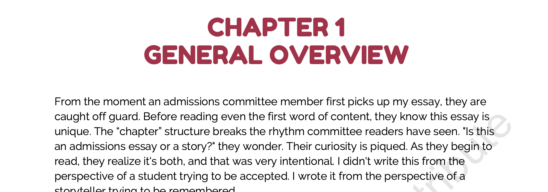 A strategic overview of every part of my Harvard essay.