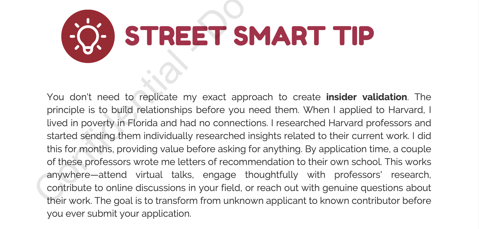 While most applicants follow generic advice from expensive consultants who’ve never done what you’re trying to do, I went from high school dropout in housing projects to Harvard student using the exact opposite approach.
